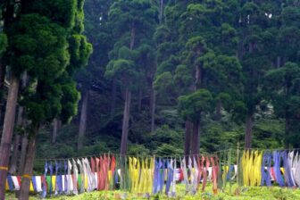 Pour atteindre le site de Tashiding, il faut grimper ! Le chemin et les escaliers sont bordés par des drapeaux à prières, des petits autels pour déposer des offrandes et quelques maisons traditionnelles. Le site abrite également de nombreux moulins à prières. Il existe deux sortes de drapeaux à prières :