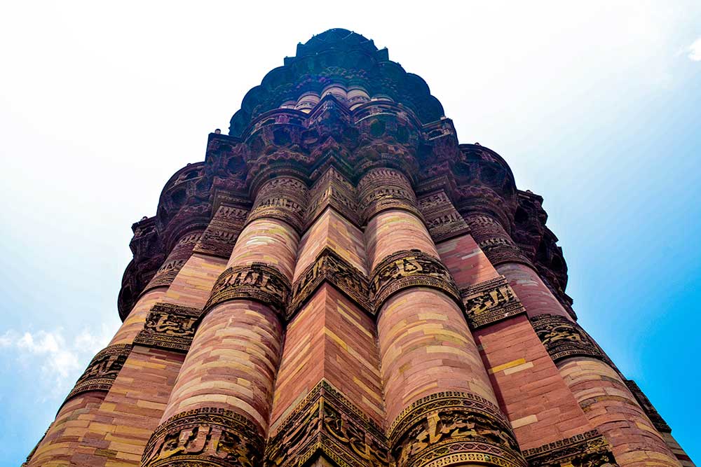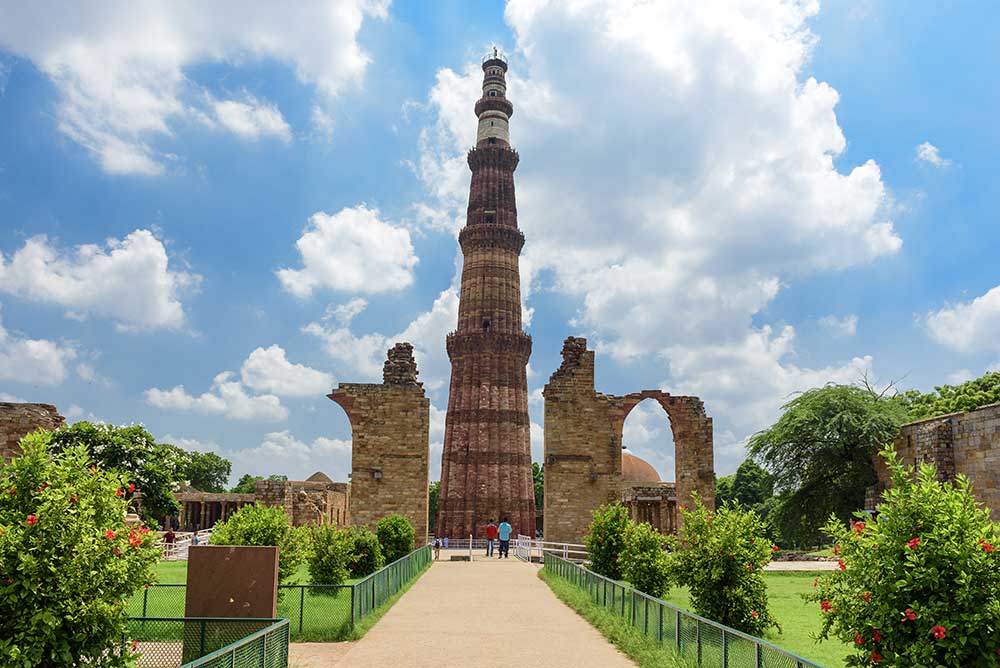 Avec une hauteur de 72,5 mètres et de 379 étages, le minaret de Qutub Minar est la plus haute tour de pierre de l’Inde. C’est aussi l’un des points de repère les plus reconnaissables de Delhi. Construit au début du XIIIe siècle, le minaret est bâti sur 5 niveaux avec des balcons en saillie et décoré d’inscriptions coraniques. À son pied, fut construite la première mosquée indienne à partir de matériaux issus de temples hindous.La zone archéologique avoisinante comprend des tombeaux, le magnifique portail d’Alai-Darwaza, chef-d’œuvre de l’art indo-musulman bâti en 1311, et deux mosquées, dont celle de Quwwat-ul-Islam, la plus ancienne de l’Inde du Nord, faite de matériaux provenant d’une vingtaine de temples brahmaniques.
