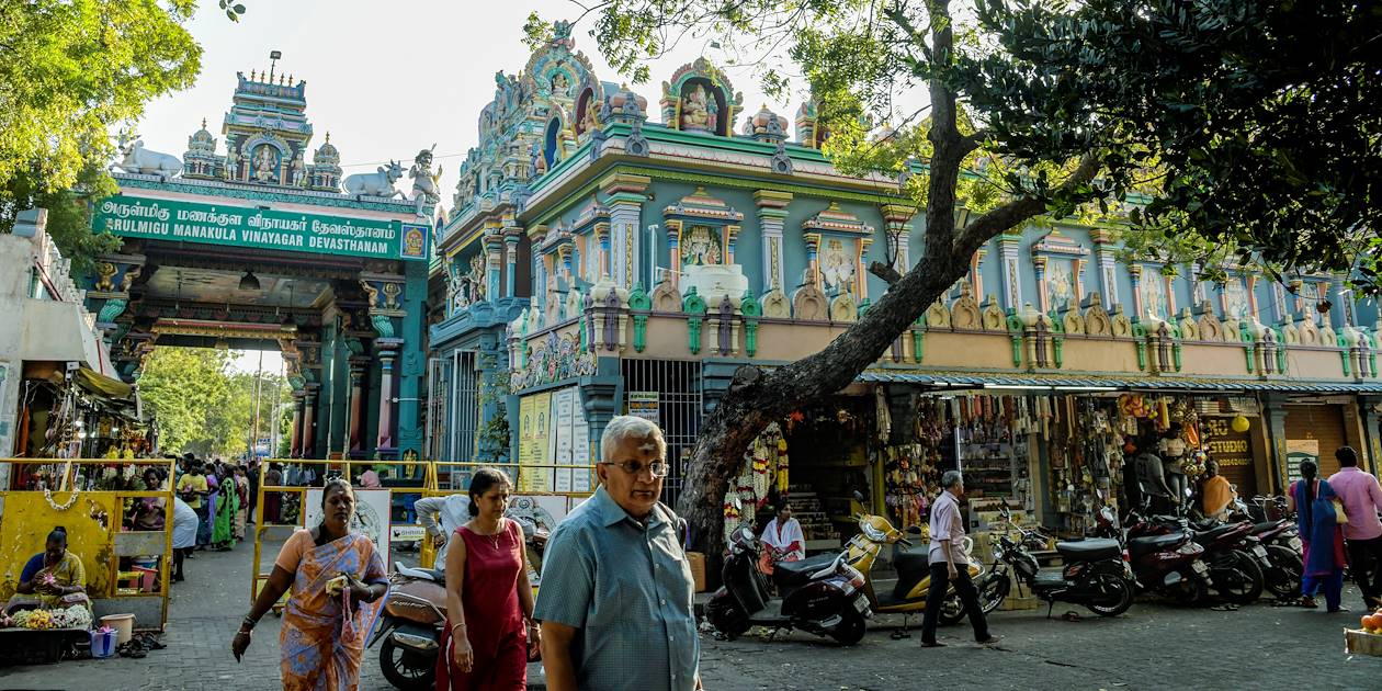 Pondichéry (Puducherry) est une parenthèse à part dans un voyage au Tamil Nadu. Ancienne enclave française, la ville mêle front de mer, bâtiments coloniaux pastel, églises, ashrams, cafés et petites boutiques.