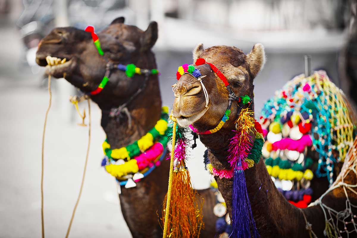 La ville de Pushkar est surtout connue pour la plus grande foire aux chameaux du Rajasthan. C’est la plus grande foire aux animaux de l’Inde, à l’ambiance de fête foraine. Des centaines de milliers de locaux et de touristes viennent pour voir cette gigantesque foire qui dure plusieurs jours à la pleine lune de novembre. Pendant une semaine des éleveurs viennent de tout le Rajasthan avec leurs chameaux mais aussi chevaux, chèvres et moutons.